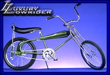 Luxury Lowrider is a Bicycle Customizer Manufacturer Restorer-Inventor company dedicated to making the Highest Quality Custom Bikes . Lux Low has made 75+ Bicycles to date with plenty more on the way. Luxury Lowrider sells bikes direct ,through bike shops ,and takes custom orders. To Order From Luxury Lowrider E-Mail with what you would like to order and your full postal address to bike@luxurylowrider.com Click on the thumbnail to view some top bikes. Watch for Luxury Lowrider (custom,antique,and reproduction ) parts,accessories, and antique bikes |